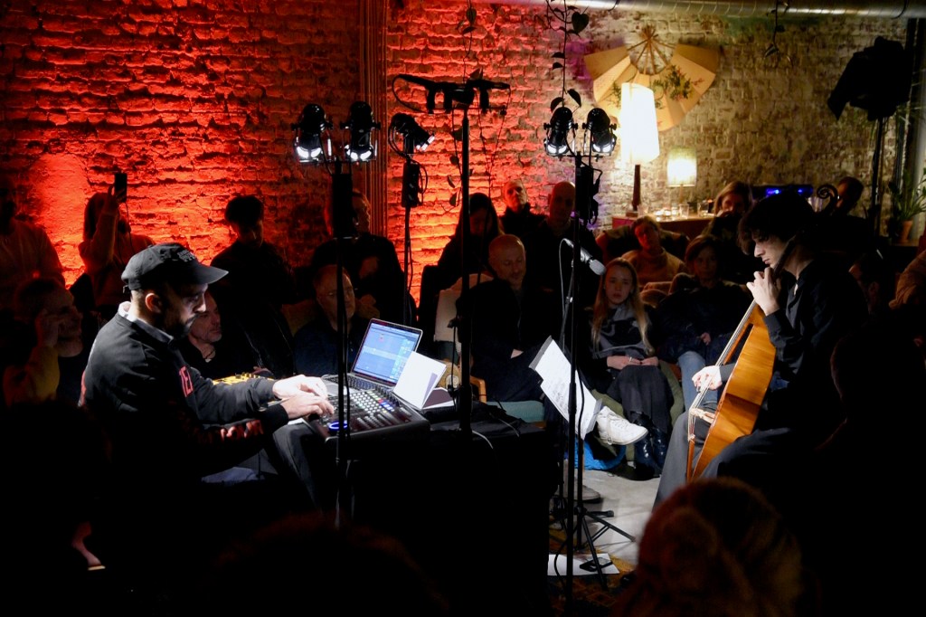 This performance emerges from an artistic residency at DAS HAUS, bringing together the distinct repertoires of two artists from distant horizons. Multidisciplinary artist Younes Zarhoni, known for his vocal layering and hypnotic techno creations, moves between madrigals, early choral forms, and mystical Arabic poetry. Spanish viol player Marc De La Linde draws from the refined elegance and emotional expressiveness of Renaissance and Baroque music. Through mutual exchange, rhythmic structures, field recordings, and electronic elements surface as preludes and interludes, unfolding within a quadriphonic setup that gives the music space to breathe and move; inviting the listener into a continuous flow of sound and silence.